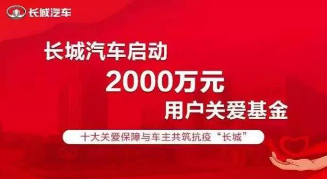 2020年的第一场开局,迎接我们的不是寻常的加薪、减肥难题,而是一场由新冠状病毒引发的全民战疫。在这场没有硝烟的战疫面前,前线有日夜奋战的医护与科研人员,后方有戮力同心的各界驰援者。当然,还有宅在家、关注着疫情变化的你。 大(疫)敌(情)当前,上下一心。长城汽车及旗下哈弗、WEY、欧拉、长城皮卡四大品牌面对疫情,主动出击,继向疫区捐款500万元及价值115万元的10台长城炮皮卡、启动2000万元用户关爱基金、推行三减三赋经销商支持政策后,再次以“零接触”计划全面推行疫情防护,全力抗击疫情,以同筑抗疫“长城”的必胜之心、全力助攻,势必打赢这场全民战疫。