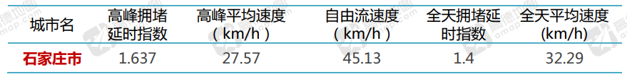 | 近日,高德地图联合国家信息中心大数据发展部、清华大学-戴姆勒可持续交通联合研究中心、同济大学智能交通运输系统(ITS)研究中心、未来交通与城市计算联合实验室等单位共同发布了《2019中国主要城市交通分析报告》。 高德地图海量交通出行大数据,来自交通行业浮动车+4 亿高德地图月活用户数据的364 调研城市+全国高速并选取100城市,根据城市规划的中心城区或建成区作为城市整体道路网的评价范围。 数据呈现:拥堵指数(出行旅行时间/自由流(畅通)旅行时间) 2019年度堵城榜:哈尔滨取代北京成全国“首堵” 根据高德地图交通大数据,2019年哈尔滨市路网高峰行程延时指数为1.935,成为2019年最拥堵的城市,重庆、长春、北京、济南、呼和浩特、西安、大连、贵阳、沈阳等城市也纷纷登上年度堵城榜前十。 四季度石家庄市交通健康指数 64.68% 石家庄市四季度交通健康指数 64.68%,六项指标中五项低于 50 城市均值,道路运行速度偏差 率比表现较差,高延时运行时间占比相对较好。 四季度石家庄市高峰拥堵延时指数 1.637 石家庄市四季度高峰拥堵延时指数 1.637,即高峰出行时间是畅通状态下的 1.637 倍,高峰平均
