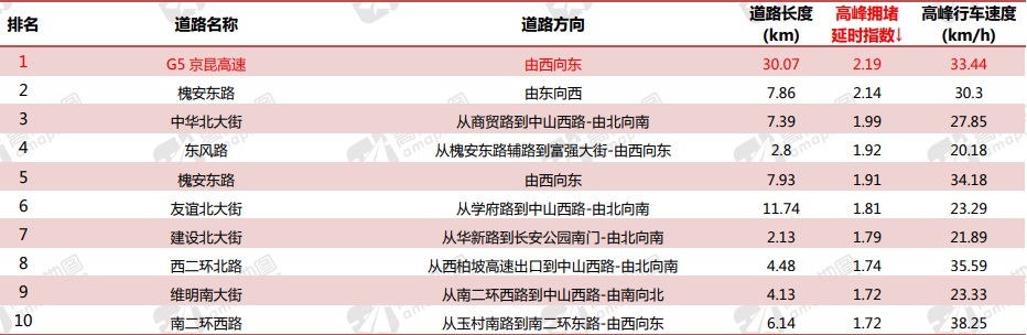 长安区是城市最拥堵区域 长安区早晚高峰路上花费的时间是畅通状态下的 1.75 倍。