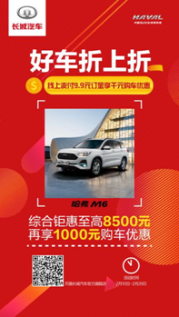 另外我还看到了哈弗SUV推出的“为爱行动 众志长城——足不出户,送‘弗’到家 ”系列活动,看过活动的介绍,我去抖音、快手看了很多次大咖的专业讲解,对哈弗M6的好感度增加了不少,最重要的是,通过参加活动,可以从第三方旗舰店购买,在天猫、京东、苏宁、汽车之家、易车、哈弗智家都可以找到相应的旗舰店,还能和网友进行交流。活动中还写到,在疫情期间购买,一口价9.9元预付款,至高综合优惠8500元,再享1000元现金优惠,而且4S店还直接将新车送到家,全程都是零接触,这一点让我感到十分的暖心。