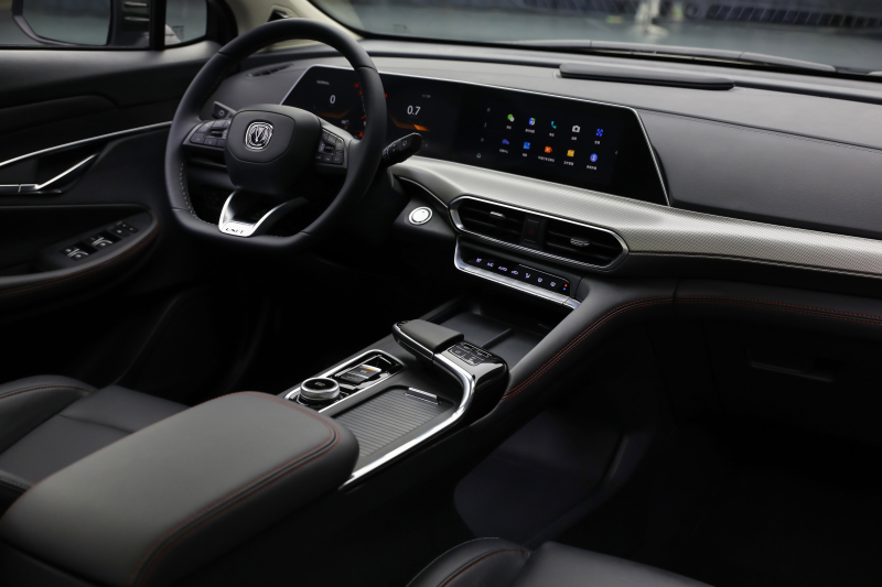 智慧双联屏:采用一体式双 10.25 英寸 1920*720P 高清显示屏,开启广阔视界;中控屏以 8.1°夹角略微倾向主驾,为 驾驶员带来便利阅读体验的同时,有效兼顾副驾视野。配合光线自适应功能,白天看得清,夜晚不伤 眼,时刻保持画面舒适。