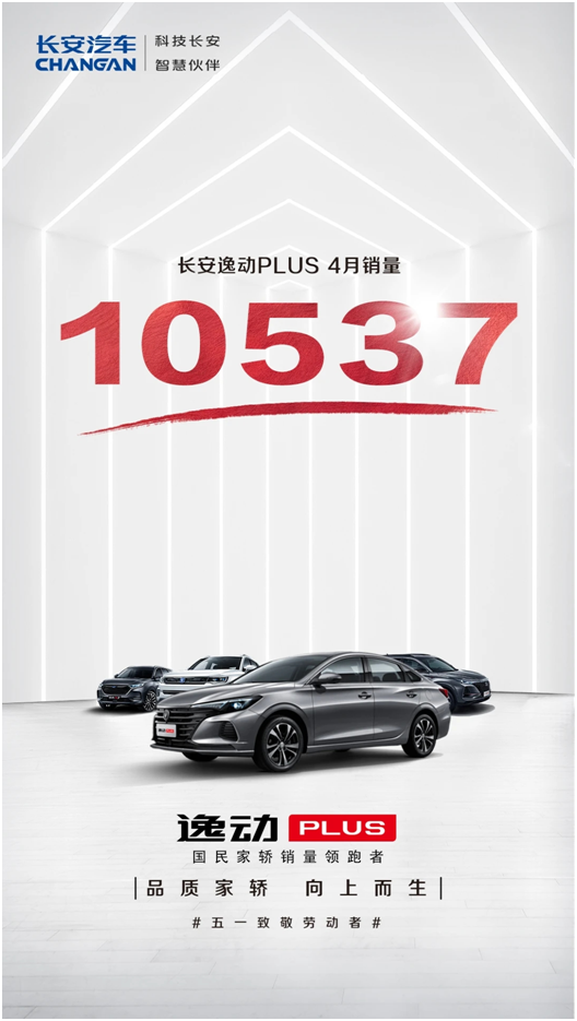 日前,长安汽车发布了4月销量数据,长安系中国品牌汽车4月销量达119435辆,同比增长37.5%。长安四大主力车型月销连续破万,逸动系列作为国内较为畅销的自主品牌轿车,4月销量突破1万大关,其中,逸动PLUS销量达10537辆,持续保持稳中有升态势,展现了出色的市场竞争实力。