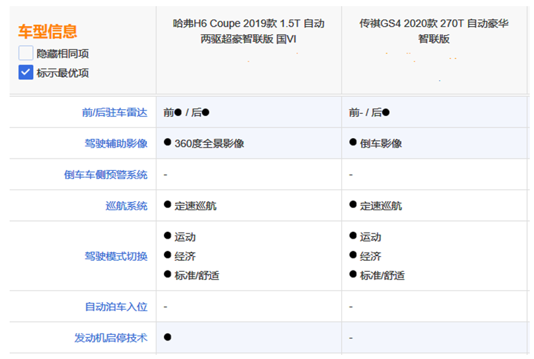 面对繁杂的10万级SUV市场,对很多消费者来说,选出一款诚心如意的车型并非易事。相对低配简陋寒酸高配价格太贵的合资SUV,自主品牌中的热销车型成为看重品价比的消费者购车时的优选对象,而哈弗H6、广汽传祺GS4等车型都是国产自主SUV的佼佼者,尤其是哈弗H6,在疫情影响犹存的4月,以24018辆的成绩继续高居国内SUV销量榜首,环比增长18%,累计斩获83个月度销冠!作为哈弗H6旗下的代表车型,新哈弗H6 Coupe正是助力哈弗H6连续取得销冠的左膀右臂。而传祺GS4近期也因《歌手》综艺名噪一时。 一个是自带销冠基因的新哈弗H6 Coupe,一个是“明星座驾”传祺GS4,这两款车该怎么选呢?今天我们不妨选取价位接近的新哈弗H6 Coupe和传祺GS4,在价格、颜值、动力、配置等方面,做一番对比,看看到底谁才是10万级SUV中的最强“C位”。 价格PK 谁更具有“致命吸引力” 从厂家指导价看,12.68万元的传祺GS4(豪华智联版)价格高于11.90万元的新哈弗H6 Coupe(超豪智联版)。此外,在5月购买新哈弗H6 Coupe,可享至高17500元的综合钜惠(见下图表)。另外,在天猫、京东等电商平台上订购新哈弗H6 Coupe,只需下单订金9.9元即可抵扣3600元,以上多重优惠叠加,大大降低了购车负担。 同为紧凑级SUV,得益于哈弗H6的规模优势,在每一辆车摊薄了成本,因此可以做到定价更为实惠。加上目前新哈弗H6 Coupe大于传祺GS4的优惠,毫无疑问在价格上,新哈弗H6 Coupe更具吸引力。 颜值PK 谁更能让你“一见倾心” 颜值方面,新哈弗H6 Coupe贴合年轻人群的审美,运动感十足,六边形进气格栅内嵌熏黑蜂窝式中网,大气帅酷;钻石形体光学车身,贯穿式车身线条设计,营造出强烈视觉冲击;雄浑大气的尾部设计,勾勒出这款车自信、运动、时尚的形象,无论是上下班行驶,还是假日郊外出游,都能够获得不少回头率。 传祺GS4则走另一种风格,没有过多硬朗的线条运用,力图在四平八稳中营造出大气。“凌云翼”造型的前格栅传承了家族的基因,具有一定的品牌辨识度。 对于消费者来说,一辆车的造型终是见仁见智,两款车的外观颜值都有各自的亮点。在小编看来,传祺GS4的造型中庸规矩一些,新哈弗H6 Coupe的造型更显年轻动感,具有更强的视觉冲击力,更符合年轻消费群体的审美。 动力及油耗PK 谁更强劲又省油 动力方面,两款车都搭载1.5T直喷涡轮增压发动机。但在扭矩表现上,新哈弗H6 Coupe搭载4B15A发动机,其峰值扭矩为285N·m,比传祺GS4搭载的4A15J发动机高出20N·m,并且新哈弗H6 Coupe的发动机在1400转时就能输出最大扭矩,这让它在起步加速阶段能更加轻松迅捷。 此外,两款车的工信部综合油耗值均为6.8L/百公里。不过,新哈弗H6 Coupe搭载7速湿式双离合变速箱(7DCT),比传祺G4S搭载的6AT变速箱传动效率稍高些,加上新哈弗H6 Coupe具有发动机启停功能,在城市行车中更利于节省燃油。根据新哈弗H6 Coupe用户在汽车论坛晒出的油耗,很多用户的百公里实际油耗在7L上下,以目前油价来估算,他们每公里燃油费不到4毛钱,如此省油的车不香吗? 配置PK 谁拥有更多“黑科技” 在配置方面,两车均搭载了一些高科技功能,比如智能语音控制、车联网、在线音乐、智能导航等,同时也都具备全面的常规安全配置。但通过进一步的配置详细对比,不难发现新哈弗H6 Coupe配备了不少传祺GS4没有的更多“黑科技”,例如,并线辅助功能、360度全景影像、前后驻车雷达等(见下表)。 而在灯光配置上和车窗及后视镜的智能化和电动化方面,新哈弗H6 Coupe也大幅领先传祺GS4(见下表)。 对比下来,新哈弗H6 Coupe不仅售价实惠,很多配置也是比传祺GS4高出一截,更具安全性,品价比优势相当明显。 小结: 自主汽车中的领先品牌近年来在核心技术、功能设计及做工品质上都取得了长足进步,而“SUV领导者”哈弗品牌正是其中的实力派,与传祺GS4相较,新哈弗H6 Coupe不仅价格更为实惠,同时配置以及动力、节油方面也很突出,堪称10万级SUV中的最强“C位”,值得近期有购买SUV车型意向的小伙伴们可以重点考虑哦。 |