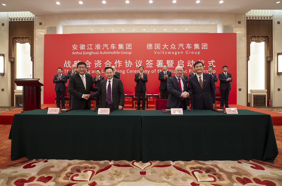 【2020年5月29日,北京,人民大会堂】大众汽车集团中国业务和电动化战略开启新篇章。大众汽车将投资10亿欧元,获得安徽江淮汽车集团股份有限公司母公司 --- 安徽江淮汽车集团控股有限公司50%的股份,同时增持电动汽车合资企业江淮大众股份至75%,获得合资公司管理权,实现企业管理模式变革。