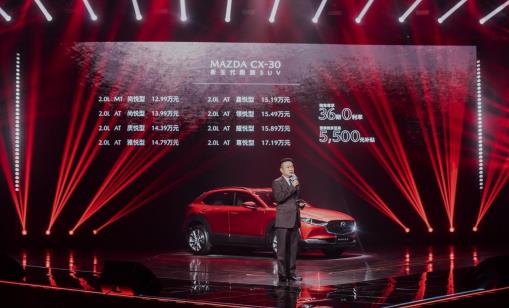 5月28日,「新生代跑旅SUV」长安马自达MAZDA CX-30以昵称「小红椒」正式火辣出道。新车共推出8款车型,市场指导价12.99万元-17.19万元。目前,新车在全国范围内已陆续到店,购车尊享36期0利率,置换悦享至高5500元补贴。 [MAZDA CX-30车型售价] 这是经济崛起的年代,这是文化进化的年代,这是数字浪潮的年代。独立与自信,多元与包容,开放与共享。当「前浪」落下,「后浪」随之涌起,每一个具有进化力精神的「创客」都在寻求华丽出道,与时代共舞。时代潮流如是,SUV市场如是。当中庸的「前浪」已不能满足年轻一代挑剔的品位,创新颠覆的「后浪」火辣登场。 [新车亮相] 定位于「新生代跑旅SUV」的MAZDA CX-30,首次将轿跑车的设计感、操控感和高级旅行车的质感内饰、空间实用性融合统一;辅以SUV的高通过性、高驾驶视野和高安全性,在中高端小型SUV细分市场开创了独特的「跑旅美学」。重塑细分市场的价值内涵与边界的同时,MAZDA CX-30也为当下那些具有「进化力」精神的「新锐创客」群体提供了极富创造力的精致拥车生活。 [付总致辞] 长安马自达汽车有限公司执行副总裁付远洪先生在致辞中表示:“作为马自达全新世代产品群首款SUV车型,MAZDA CX-30以「细腻而果敢」的设计理念造就了映衬天地的「穹影之美」,再次刷新了人们对汽车工业设计美学的认知。我相信,MAZDA CX-30独特的产品价值,将激发广大用户对拥车生活的无限想象,助力人生不断向上”。 由MAZDA CX-30领衔主演的《青春跑旅环游记》微电影拉开了本次上市会的序幕。电影里,以美食主播KiKi、音乐组合长安里、摄影达人文子为代表的新生代都市「创客」,在各自生活的广州、西安、杭州三座城市,以美食、音乐、摄影为媒介,不断探寻人与车、车与城,人与城的多种跨界生活方式的可能。他们以「忠于自我,不断进化」的生活态度,生动演绎着属于自己的「跑旅人生」,在多姿多彩的大时代里勇于追求自己的理想。 从「长马十二时」到「MAZDA CX-30 30说」,再到今天的《青春跑旅环游记》上市发布会。长安马自达始终以创新、丰富的营销理念和形式,和粉丝、网友搭建起了新品沟通、分享的平台,获得了广泛好评,焕发了百年马自达品牌年轻化的魅力。 2020年,马自达品牌迎来百年诞辰。作为全新世代产品群首款SUV车型,MAZDA CX-30的上市,为百年马自达的精彩历程添上了浓墨重彩的一笔。 [中岛总致辞] 长安马自达汽车有限公司总裁中岛徹先生在致辞中表示:“在马自达品牌成立100周年之际,我们希望通过全新世代SUV车型MAZDA CX-30的成功上市,为马自达品牌、长安马自达注入强劲的发展活力,进一步提升品牌价值,推动企业的稳健发展。100周年,是一段时光旅程的节点,也是起点。我们将始终坚持「以人为本」和永不妥协的挑战精神,持续提供令用户喜爱的产品、技术和服务体验,传递马自达品牌的独特价值,与每一位用户建立历久弥新的情感纽带”。 自4月26日开启预售以来,MAZDA CX-30获得了网友、粉丝、用户、媒体的高度关注,在新车直播过程中更是收获了「小红椒」的昵称。上市会现场,「小红椒」昵称的提出者,也是长安马自达次世代MAZDA3昂克赛拉的用户王月受邀为MAZDA CX-30新车开箱。与新车一同惊喜亮相的,还有新生代偶像范丞丞。他以一首极具「跑旅精神」的《Can't Slow Down》新歌首秀再次将上市直播间的氛围推向**。 [吴总公布售价] 万众期待中,长安马自达汽车销售分公司执行副总经理吴旭曦先生公布了MAZDA CX-30正式售价,并响应广大粉丝需求,推出「购车尊享36期0利率,置换悦享至高5500元补贴」的HOT购车福利。面对新生代的用户群体,吴旭曦表示:“我相信,每一位喜爱、选择MAZDA CX-30的用户,都是有朝气,有力量,有「进化力」精神的「新锐创客」,都在追求更加丰盈而精致的美好生活”。 [及川总宣布代言人并开启试驾活动] 发布会上,长安马自达汽车有限公司市场销售副总裁兼销售分公司总经理及川尚人先生宣布范丞丞将担任MAZDA CX-30代言人。与此同时,长安马自达将在全国范围内开启MAZDA CX-30「青春跑旅环游记」主题试驾活动,并诚挚邀请粉丝、媒体朋友踊跃参与,体验「跑旅生活」的无限精彩。 [MAZDA CX-30代言人范丞丞] 穹影曲面,美轮美奂 “我们用设计的力量,为汽车注入鲜活的生命”。「魂动」设计始终追求着饱含情感的极致动态造型,致力于打造丰盈所有观者心灵的设计,彰显生命之力,闪耀艺术价值。 「魂动」设计理念自诞生以来,以百般磨砺、独具格调的精致风范,成就了汽车工业制品和艺术之美的施然邂逅。在「魂动2.0」设计美学下,MAZDA CX-30以「细腻而果敢」为设计关键词,将东方美学意识中的「余白、反曲、变幻」元素融入其中,历经反复雕琢,最终攀上全新的审美高峰——映照天地,光影变幻的「穹影曲面」之美。 [穹影曲面] 以设计之美,激发用户内在的创造灵感。在美轮美奂的「穹影之美」外,MAZDA CX-30的外观设计还充分展现出SUV特有的稳重感和实用性。优美修长的引擎舱和饱满宽厚的尾部造型前后呼应,将轿跑车的动感和SUV的力量感完美结合,辅以同级别最高的离地间隙,形成独一无二的「跑旅美学」观感。凭借技惊四座的跨界美学设计,MAZDA CX-30斩获[2020德国红点设计大奖」。 [车辆外观] 人马一体,随心所至 “我们如此热爱汽车,坚持自由驰骋的驾乘愉悦,让人车关系如同骑手与爱