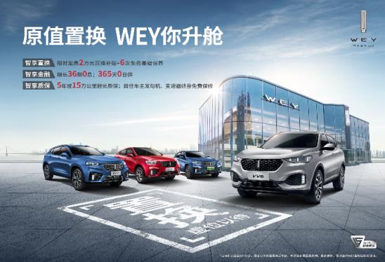 当前中国汽车消费正处于转型升级的过程,为满足车市的发展趋势和新兴都市中的家庭用车升级需求,WEY品牌于近期推出“原价置换 WEY你升舱“用户关爱举措。6月1日至6月30日期间,选购VV6车型的意向用户,可享最高100%原值置换、补贴加码至最高2万元的限时升舱等多重优惠政策,让广大消费者一步到WEY,实现爱车升级。 此外,6月份正值“WEY品牌超级直播月”,新老用户还可通过关注直播和618电商节抢购线上优惠券等多重好礼! 焕新礼:补贴加码,原值升舱换新车 “原价置换 WEY你升舱“推出置换加码或100%原价置换等多项优惠政策,将焕新“置”尊体验落到补贴实处,为消费者带来实在的利益。其中,针对于部分品牌车型(长城品牌C30,哈弗品牌H1、H2、H4、H5、F5、M6、H6、F7等系列车型及WEY品牌全系车型)置换VV6,WEY品牌将置换补贴限时加码至最高2万元/台;除以上车型外的其他车型,限时增加置换补贴至最高1万元/台。 同时,VV6更推出“100%原值置换”活动,让你再也不用担心“保值率”这一问题!WEY品牌针对旧车年限小于2年的长城车主最高可享100%旧车回购折扣率,进行原值置换VV6;对于使用年限为3年-5年的车型,最高可实现90%-70%不等的超值回购折扣率,以远超市场的回收价格,实现超值升舱置换VV6。 暖心礼:三年用车成本降最低 在享受焕新补贴的同时,WEY品牌还为置换VV6的用户限时赠送6次免费的基础保养,进一步降低WEY品牌用户置换后约三年内的用车成本,真正做到“让豪华触手可及”,售后服务更暖心。 金融礼:旧车原值换新车 在享受置换加码及原值置换的超值福利外,WEY品牌推出的多元化暖心金融政策同样受用,体验“原值升级,免费开一年”,即置换VV6的用户可以选择“0月供”金融政策叠加置换政策,相当于旧车置换抵新车50%首付,即可享365天0日供开新车。此外,还有超长36期0息贷、超低月供等金融政策均可与置换政策进行叠加使用,带给你悦享升级的换购体验。 质保礼:双超质保享无忧 伴随着“WEY你焕新”,WEY进一步强化“双超质保”服务升级落地,为客户在用车全生命周期内创造更大的价值。WEY品牌全系燃油车型整车延长为5年15万公里质保,并为新老用户提供发动机、变速器免费终身保修;新能源车型动力电池电芯首任车主终身保修,其他核心部件10年/25万公里质保,从长远角度角度为用户节省大量用车成本。 自WEY品牌成立三年多以来,始终以用户为中心,将“触手可及的豪华”带给更多消费者。此次通过“WEY你焕新,智领安全体验季”,再次以实际行动满足消费者日益增长的“焕新”升级需求,为新老用户带来超越期待的切实利益。 (文中具体政策详情请咨询当地WEY品牌经销商,最终解释权归WEY品牌所有)