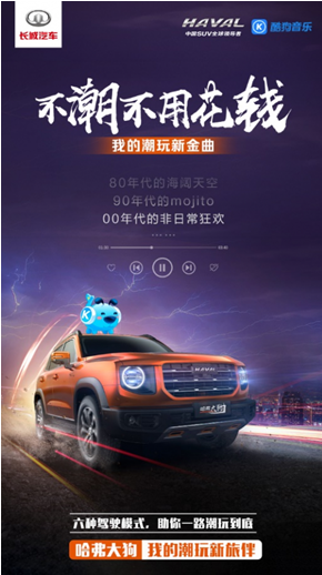 2020年下半年,优酷王牌综艺《这就是街舞3》、国内首档潮玩创意真人秀《潮玩人类在哪里》、首档推广年轻态潮流生活方式的节目《夏日冲浪店》……10余档以年轻、潮流为主旋律的系列综艺即将掀起新一轮的先锋潮流文化。 然而在潮流综艺大爆发之前,哈弗大狗联手酷狗、虎扑、搜狗三大平台的潮玩大事件已率先“定档”,在潮流指数继续爆表的7月盛夏,哈弗大狗将带领潮野青年激活娱乐、生活、社交三大圈层,抢先开启下半年的潮玩生活。 刷爆潮玩圈 哈弗大狗成为最火“潮流ICON” 《光年之外》《mojito》《月半小夜曲》《爱你一万年》……一份串联起70年代到00年代的潮流主旋律,率先点燃了年轻人的热情!由哈弗大狗与酷狗音乐联手打造的定制歌单,不仅碰撞出彼此更加活力激情的一面,同时也助力年轻人潮力全开。无论在私密空间自娱自乐,还是在年轻派对营造气氛,这份潮流音乐歌单都能让你随“音”所欲、嗨爆全场。 潮流与音乐迸发年轻活力的同时,一场**年轻人的“潮鞋”狂欢也在刷爆潮流圈,近日哈弗大狗联手虎扑开展了“潮流鞋品体验季”互动,如何让年轻人心甘情愿被“种草”?除了能亲眼见证年度“鞋王”诞生,还有机会见到年度24大潮鞋报告,一双难求的顶级藏品,爆吧式的潮鞋热门话题、潮流无差别的虎扑JRs大乱斗,真香定律再次上演! 为了用最in、最潮、最专业的态度诠释潮流,哈弗大狗还将以线上全民K歌、线下潮流快闪店等形式集结玩家,潮流快闪店不仅设有潮流打卡专区,更有热血街舞show time,即兴挥洒热情,潮牌潮物让心跳加速。同时,哈弗大狗还将携手搜狗输入法在7月上线潮流表情包,玩乐与激情交融,创意与潮流共生,哈弗大狗与你一同开启潮玩新视界。 天生潮流体质 哈弗大狗为潮玩属性加码 “只有高颜值才配拥有自己的style,才能称得上潮流”,这句时尚圈的真理名言同样适用于汽车圈。只有坚持钻研时尚,才能实现自己的潮流造型,“心潮力量美学”所赋予的潮流、野趣基因,让首次担任“潮流研究员”的哈弗大狗自带潮流体质。 在年轻化的时代浪潮下,这款新车带着大自然的灵感与内心的精神之力潮野来袭,地球之眼圆形大灯、天际线横贯式尾灯、撞色缝线内饰等由内而外散发出的“潮流动感”、“狂野力量”,成功赢得一众潮野青年的热血之心。 作为哈弗SUV的潮流车型,想要走在潮流尖端绝非仅靠颜值,实力会玩才是哈弗大狗的正确标签,解锁潮流新玩法的背后是2把差速锁,全新V3智能平台,智能四驱系统,6种驾驶模式带来的高质感行驶乐趣。兼具城市SUV与硬派越野车实力的哈弗大狗,既能游走于城市钢铁森林,又能闯荡于户外自然野趣。 年轻个性的造型设计以及富有潮玩野趣的产品属性,哈弗大狗就是这样潮流的存在,既能唤醒年轻人追逐潮流的内心,又能助力他们发现多面精彩人生,一直在用永不安分的心潮力量和最懂人心的用户思维,创造年轻消费者所向往的潮玩生活。 无论走在互联网潮流音乐尖端的酷狗音乐,还是引领潮流风向的虎扑,或是智能手机时代极受欢迎的搜狗输入法,都开始着力于潮流文化的发掘,而拥有年轻品牌基因的哈弗大狗,同样洞悉到用户需求的转变,并持续输出潮流生活方式,以硬核实力带领年轻用户潮玩出彩。潮流跨界永不停歇,这个7月,哈弗大狗与你一路潮前! |