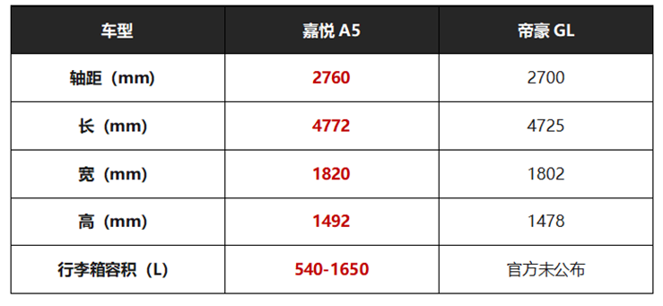 随着国产品牌车企的实力不断增强,除了SUV领域外,轿车市场份额也逐渐被国产品牌车企蚕食,尤其是在紧凑级轿车细分领域,越来越多的国产优秀车型出现在大众眼前。在今年上半年各大车企发布年中成绩单时,我们已经能明显看到国产品牌的强大。 如果你手握十万预算,想买国产紧凑型轿车,那我们可以拿持续领跑掀背市场、热度高居不下的嘉悦A5与销量一直稳定的吉利帝豪来细致的对比。看看两款车型,哪款更是你的菜。 外观:掀背+溜背嘉悦A5造型更时尚前卫 外观方面,嘉悦A5前脸采用直瀑式进气格栅,与两侧的矩阵式LED前大灯相搭配,造型犀利,气势十足。侧面的腰线从前翼子板一直上扬至车尾,营造出一种俯冲的效果,隆起的鲨鱼鳍窗线饰条也进一步加剧了这种快速收紧的视觉冲击感。尾部的最大亮点来自于这个十分运动的溜背造型,不仅带来更具轿跑风范的外观感受,同时也带来了掀背式后备箱更便利的载物条件。贯穿式的全LED尾灯是整个车尾的视觉重心,黑色的边框也让其显得更加精神。 帝豪GL在外观方面较为中规中矩了,外观沿用家族式设计风格,水波涟漪前格栅与品牌设计保持一致,黑色车标与镀铬饰条营造不错的运动感。两侧前大灯造型上扬,下包围采用了三段式进气口设计,两侧雾灯区进气口采用了密集导流槽设计。帝豪GL侧面造型的双腰线设计,为这款车增添不少动感。尾部同样采用了类似小鸭尾的设计,后尾灯采用了镀铬饰条连接,尾排则采用了双边双出镀铬排气。但帝豪GL整体外形表现更为保守,没有明显抢眼的地方,只能说中规中矩。 如果你是一个喜欢有颜值有个性轿车的消费者,那时尚运动大气、凌厉精致的嘉悦A5无疑更加符合年轻人的品味。 空间:嘉悦A5全面超越帝豪GL 买车不仅要看外观,空间也是消费者购车的重点关注内容,空间是衡量一辆家用车是否实用的基础。从上图嘉悦A5与帝豪GL的整车尺寸数据来看,同样是紧凑级别轿车,嘉悦A5比帝豪GL大上整整一圈,在车身长宽高、轴距、行李箱容积等方面全面领先帝豪GL。大尺寸加上长轴距优势,带来极其实用的大空间。并且嘉悦A5的后排顶部还巧妙做出凹型设计,让后排乘坐人员拥有更为实用的空间享受。再加上全景星空天窗,视野享受也同样出色。 两台车都定位为紧凑级别轿车,但嘉悦A5能媲美B级车的车身尺寸,无疑能为消费者带来更大的驾乘空间,也更为舒适。此外,嘉悦A5作为掀背轿车,“两倍挑高三倍空间”可不是盖的,后备箱装载能力相较于其他同级车型更为优秀。对于注重生活实用,担心轿车装载能力的消费者而言,解决了他们购车的最后一个障碍。 内饰:嘉悦A5比帝豪GL更具科技氛围 内饰部分,嘉悦A5采用T型设计风格,使用了大量的平行线条装饰,搪塑、钢琴烤漆、纹理皮质等材料的运用,令整车内饰档次感更为突出。其中,10.4英寸控制大屏占据了很大一部分的中控区域,集成了如J-Link智聆车联网系统、远程控制、空调、车载娱乐等功能,一切都简单明更具科技感。同时,嘉悦A5还搭载了7英寸的全液晶仪表盘,能显示油耗、胎压以及导航等信息,还可提供个性化的UI主题。 帝豪GL内饰设计较为传统,中控使用了大面积的金属拉丝材质覆盖,全新的三幅式仪表与电子档杆使内饰更具商务感,内嵌式中控屏与全液晶仪表同级车型内饰中很难抢眼。同时该车配备了GKUI智能生态系统,具备远程控制以及多种功能。 显而易见,嘉悦A5的内饰风格设计质感更加符合当代年轻人的喜好,简洁的设计及带有纹理的皮质等颇为亮眼,在兼顾视觉与实用上做到了完美平衡,消费者接受程度自然更高。而帝豪GL内饰设计则更为传统老气。可以看出,嘉悦A5内饰无论是在质感、科技感、视觉感方面均要优于帝豪GL。 配置:同样价格区间,嘉悦A5诚意比帝豪GL更足 国产品牌车型之所以能够赢得市场,诚意十足的配置是很大关键。作为两款都很具性价比的国产车,嘉悦A5与帝豪GL谁更具性价比?我们以两款车实际售价接近卖较好的车型,嘉悦A5 1.5T+CVT超越+型8.78万,对比帝豪GL 1.4CVT豪华型8.88万,来看看两款车谁更有诚意。 从对比表格中可以看出,嘉悦A5 CVT超越+型在配置上明显领先帝豪GL 1.4T CVT豪华型。其中嘉悦A5 CVT超越型多出LED灯、氛围灯、感应雨刷、后排空调出风口、流水转向灯以及电动后备箱、后视镜电动折叠等配置。相比之下,帝豪GL豪华型比嘉悦A5超越+型贵了近2000的售价,在其他配置差不多情况,少了如上图这么多配置,这种出乎意料的价格与配置反差,彰显了见嘉悦A5的十足诚意。 底盘对比:嘉悦A5搭载E型多连杆悬架更加舒适 好的底盘能直接决定车内人员的驾乘舒适度,虽然两款车都采用了前麦弗逊式独立悬架,但不同的是嘉悦A5搭载了同级罕有的E型多连杆式独立悬架,并且底盘由麦格纳和大众等底盘专家历时半年的精心调校,能有效的过滤复杂路面带来的颠簸与振动,极大提升车内人员驾乘舒适感。同时嘉悦A5全系搭载博世9.3ESP系统,轻松实现高速转弯及紧急变道避障,这对于一款主打运动色彩的家用轿车来说,是个很不错的基础硬件条件。而为了提升车辆的车身刚性,嘉悦A5还采用了同级别少见的全框式副车架,进一步提升了车辆的操控性能。而帝豪GL搭载的扭力梁式非独立悬架较为传统,造价成本也更低,整个的驾驶舒适度自然也没有嘉悦A5好。 同时嘉悦A5的刹车距离也更短,嘉悦A5 刹车距离仅有37.4m,成绩