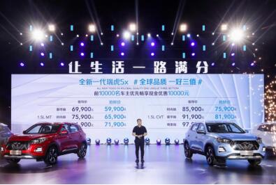 7月16日,在北戴河美丽的滨海沙滩,奇瑞全新一代瑞虎5x正式上市。新车提供1.5L MT/CVT两种动力总成共6款车型,官方售价区间为6.99-9.79万元,前10000名车主优先畅享现金优惠10000元,抢鲜价5.99万元起。同时,奇瑞汽车还郑重承诺:全新一代瑞虎5x发动机终身质保,成为A0级SUV市场第一个,也是唯一一个提供发动机终身质保的车型。此外,新车还提供满分金融礼、满分置换礼、满分流量礼。 奇瑞汽车股份有限公司党委书记、董事长尹同跃先生致辞 奇瑞汽车股份有限公司副总经理、汽车工程技术研发总院院长高新华博士讲解产品 奇瑞汽车股份有限公司副总经理、营销公司总经理贾亚权先生公布售价