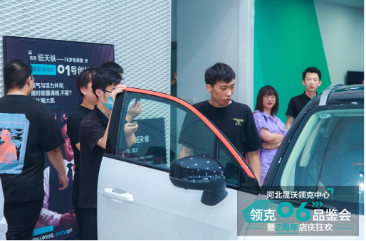 现场不仅为来宾们准备了精美茶歇,更有活动游艺区域,可谓热闹非凡。 河北晟沃领克中心开业首位领克车主 共同分享领克河北晟沃两周年生日蛋糕 领克06新都市机能SUV全新车型进行本次活动亮相。作为领克家族的新成员,造型方面,领克06延续家族式设计语言,比如我们已经非常熟悉的贯穿式中网、分体式大灯,同时又与时俱进加入了更多,更新颖潮流元素。领克06给人最大的感触就是“剥离”感,因为除了前脸家族式的都市天际线外,你很难将TA和其他领克产品建立起直接联系。领克06的颜色使用更为大胆,车身各处大量采用了撞色设计,突出了年轻的活力。将领克所强调的都市对立美学又一次非常具象化的展示,既可以活泼也可以雅致。 领克06新都市机能SUV客户品鉴 在该理念的支持下,领克06在保持品牌独特外观辨识度的同时,大胆采用了十项设计创新,其中包括领克06专有的蓝橙配色;全新的Z字型运动腰线;全新的轻体式悬浮车顶;品牌首次采用的双前格栅设计;全新样式的电子档把;品牌首次采用的膜下氛围灯;品牌首次采用航空反反射仪表台;品牌首次采用隐藏式大灯设计;全新的能量晶体尾灯设计;独有的组合灯光交互模式。 内饰设计上,领克01、02、03保持了统一的风格,到了领克05上,开始出现了明显的变化。在领克06上,新的内饰设计风格更加趋于成熟。在中控饰板方面,领克06首次采用了能量晶石切割内饰板,精心排布的不规则几何图形,如同瞬间定格的能量晶石,明暗交错,并通过先进的INS膜片透光技术,设计出极具科技感的能量晶石呼吸氛围灯,如同赛博朋克都市中闪烁的霓虹,散发的耀眼光芒点燃座舱,彰显内心激情,72种颜色随心随行尽情变幻。
