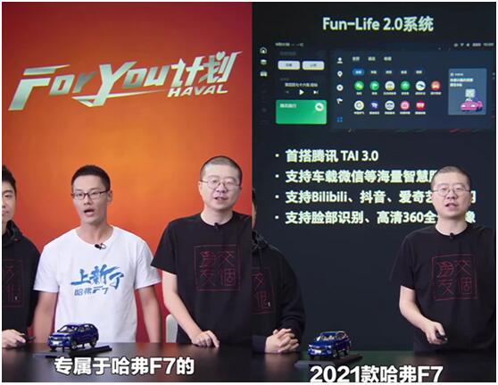 2.0系统和12.3寸中控显示屏,首搭腾讯车联TAI3.0功能,可为用户提供X反应堆、车载微信、生态账号一键绑定等海量智慧服务,B站、爱奇艺、抖音、全民K歌、喜马拉雅等热门软件全部上车,无论你要看最新番剧,还是李诞的代表作脱口秀大会,2021款哈弗F7都能满足你的需求。 除去卓越的实力之外,直播现场,李诞更是着重强调2021款哈弗F7的增配不增价。并以2021款哈弗F7 i型版举例,相比老款车型其新增智能前视、车道保持、交通标志提醒、自适应巡航、行人安全辅助、转向多模式等配置,中控大屏更是由9寸升级至12.3寸,实现超过一万元的增配。而对于用户而言,却仍只需要花13.18万元的价格购买,相当于净赚一万元真香配置福利。 显而易见,李诞与2021款哈弗F7的受众高度重叠,都以年轻人群为主。此次李诞首次直播带货选择2021款哈弗F7,同样是深度认可其潮智实力,也必将提升2021款哈弗F7在年轻消费者心中的产品形象。值得一提的是,在亲密互动的同时,本次直播互动在狂撒购车福利的同时,更公布哈弗F7车主专属的 For You计划,旨在以“用户至上”的核心理念,助力用户从下单、交车到成为哈弗F7的车主的**,贴心至极。 与年轻人同频共振 深耕年轻化营销领域 正如李诞、罗永浩等明星大咖热衷与年轻人同频共振一样,2021款哈弗F7在营销领域同样专注年轻人群的喜好。上市之初,哈弗F7携手热门综艺《蒙面唱将》,化身哈弗AI智能侠圈粉科技迷;在直播盛行的当下,哈弗F7果断与初代网红罗永浩合作,打造汽车行业直播带货经典案例。 2021款哈弗F7上市当天,中国星主持华少、脱口秀大会冠军王勉等鼎力相助,更让2021款哈弗F7的智能AI交互系统圈粉年轻人群。营销动作跨圈而行不拘一格,正是这种跨圈营销,让2021款哈弗F7与李诞走到一起,我们也期待2021款哈弗F7更多明星大咖、跨界大咖合作,解锁汽车营销新玩法。 日前,2021款哈弗F7刚刚上市,并推出诚意满满的“上心七重大礼”:凡9月底之前购车即享5000元现金优惠的上心现金礼,贷款或置换增购则可分别享受至高9000元金融贴息的上心金融礼、至高10000元的限时置换补贴和限时增购补贴。同时,更有上心专属套餐礼、上心智享互联礼限时奉送,用户购买2021款哈弗F7同步更可享受上心保养无忧礼,即购车立享3年或6次基础保养政策。如此诱人的优惠政策,堪称国内汽车行业之最,快约起来吧,与李诞一起喜提这个秋天的第一台车! |