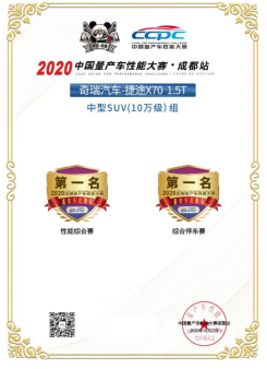 值得一提的是,就在不久前的首站比赛中,捷途X70一举夺得了麋鹿测试、性能综合赛、蛇形测试等6个单项成绩第一,荣膺中型SUV(10万级)组冠军。 目前,2020 CCPC中国量产车性能大赛·成都嘉年华站的成绩已经公布,捷途X70又获得了性能综合赛、综合停车赛两个单项冠军,长距离节油拉力赛中,捷途X70共用油15.34L,平均油耗仅有5.4L/100km。用实力说话,捷途X70再次展现出强大的产品实力。 CCPC中国量产车性能大赛与我们平日里所见到的一些在赛车场或者特殊路况里的改装车比赛不同,CCPC参赛车辆确保与消费者所购买到的一致,成绩的好坏直接映射在了商品车的性能上。 参加CCPC的车型组委会会根据其销量、关注度、新车排名等等来决定其入围的条件。意思就是说,在这个门槛之上,参赛的本就不是等闲之辈,可以说入围即是实力。CCPC中国量产车性能大赛本身就是最权威的一次汽车横评,为消费者提供了车辆最真实和公正的性能对比。