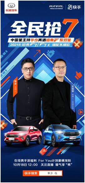 10月18日,2021款哈弗F7#全民抢7直播季#首战正式打响。作为一款全球智能潮品SUV,2021款哈弗F7强势登陆中国星主持华少个人直播带货专场,不仅在直播间大秀潮智魅力,还开启“521宠粉专场”模式狂撒超级福利,瞬间引爆整个直播间,让网友直呼爱了爱了。整场直播战果颇丰,实现在线累计观看超百万,点赞超百万的直播盛况。