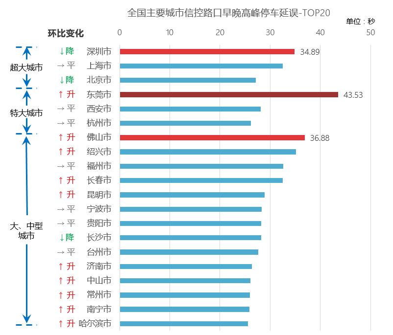 红绿灯路口停车延误榜出炉:东莞 佛山 深圳排名前三 根据高德地图“明镜”交通评价系统监测,全国主要城市重要路口早晚高峰停车延误的TOP20中长三角和珠三角地区的城市占一半,红绿灯路口排队长度的TOP20中以南方城市为主,大中型城市中多数城市指标环比呈上升趋势。三季度停车延误前三位城市分别为东莞、佛山、深圳,与二季度一致;环比发现,深圳的停车延误有显著降低,东莞、佛山略有增加。路口排队长度排名前三位城市分别为西安、贵阳和广州,与二季度一致;环比发现,西安排队长度基本持平,广州、贵阳略有增加。
