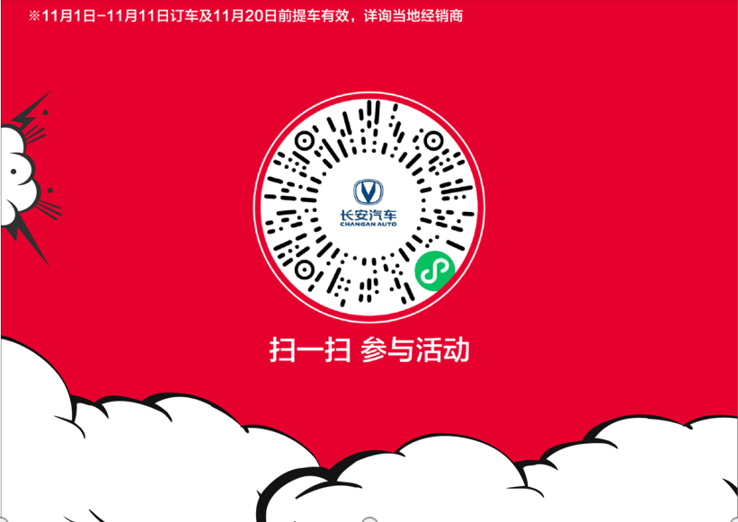 尖叫狂欢 额外三重好礼等你抢! 除了以上车型外,“11.11尖叫购车节”活动期间,用户下订CS35 PLUS、新CS75 2020款、CS85 COUPE、全新CS95等车型,同样也有惊喜等着你,综合现金最高优惠高达20000元!此外,长安汽车还为用户限时准备了现金抵扣礼、环球好物礼、千倍订金礼等三重额外惊喜!在11.1——11.11活动期间,用户购车可叠加享受2021元现金抵扣、1000元环球优品礼包、天猫商城付1元订金享1111元购车现金券等精彩豪礼。 随着“双十一”的临近,许多品牌都推出了相关政策,相比那些堪比高数的花式套路,长安汽车“11.11尖叫购车节”的狂欢钜惠无疑更为超值、透明、真诚,而迫不及待想要订车的用户,只需扫描上方活动二维码,即可参加活动,拒绝套路,钜惠购车! |