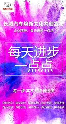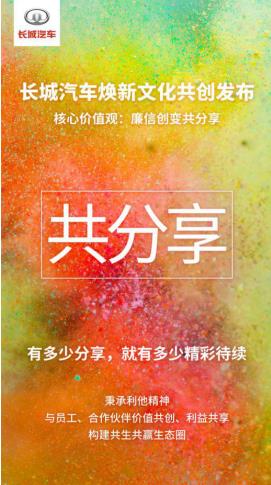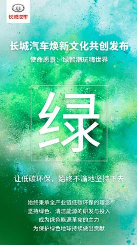 11月16日,长城汽车以“一场21个字的发布会”,对外发布了公开信《以绿智 共潮玩 一起嗨世界——长城汽车焕新文化》,也正式公布全新的使命愿景——“绿智潮玩嗨世界”、全新的核心价值观——“廉信创变共分享”、与“每天进步一点点”的企业精神,这21个字共同组成长城汽车全新企业文化。 长城汽车全新企业文化 此番文化焕新,长城汽车历时数月,向企业内部员工,供应商、经销商等合作伙伴开展了广泛的文化调研,征集建议2万余条,在高管层面展开多轮深入研讨,通过共创达成共识。过程中,不仅可充分吸纳集体智慧结晶,更能从根本上将全新的企业文化融入到包括技术、产品、用户运营等在内的各个业务板块,进一步深化组织与机制变革。