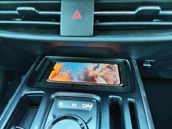 在炫目光刻换挡旋钮前方,还有支持无线充电的置物板,上车后把手机放上去,时刻让你保持电量充足。