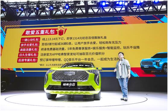 其中包含:官方天猫旗舰店13.14元下订,即享1314元初恋百倍膨胀礼金的一键心动礼包;至低0首付起或36期0息的放手去爱礼包;终身免费基础流量,5年免费尊享服务+娱乐服务+智能监控的高能流量礼包;注册官方APP哈弗智家发帖可抽取百元价值积分的日久生情礼包;以及预订享哔哩哔哩、QQ音乐平台一年会员的后浪专属礼包。