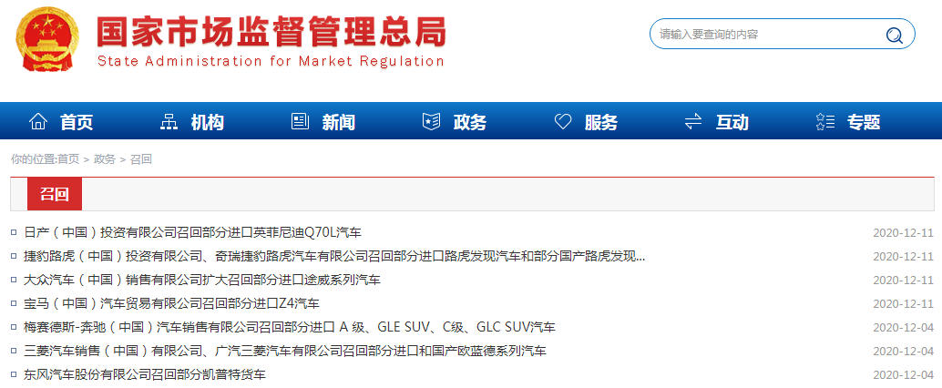 2020年最后一个月了,国家市场监督管理总局网站公布了一批车辆召回信息,其中涉及很多豪华车,尤其奔驰涉及旗下多款车辆召回。 一、日产(中国)投资有限公司召回部分进口英菲尼迪Q70L汽车