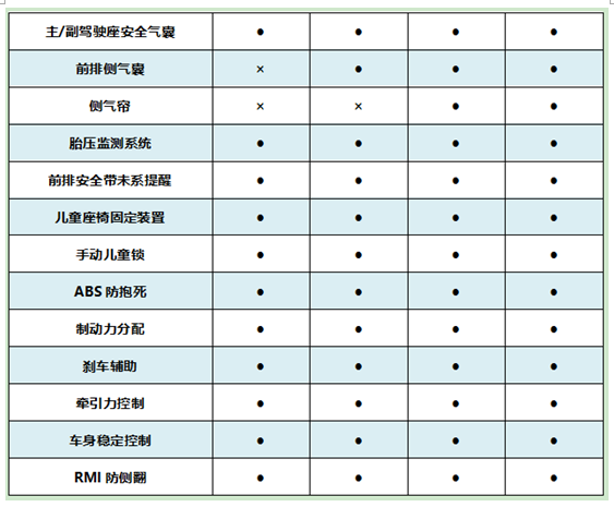 而在安全性配置上,哈弗初恋同样继承了哈弗品牌高安全性的特点,全系标配了主/副驾驶座安全气囊、胎压监测系统、前排安全带未系提醒、儿童座椅固定装置、手动儿童锁、ABS防抱死、制动力分配、刹车辅助、牵引力控制、车身稳定控制、RMI防侧翻等,从主/被动两个层面为用户提供安全保护。并且除大一版车型外,哈弗初恋还配备了前排侧气囊,大三版和大四版车型配备了侧气帘,充分保障用户行车安全。