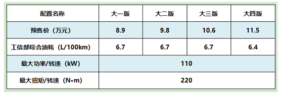 至于在动力配置上,4款车型全部搭载1.5T+7DCT的黄金动力系统,最大功率为110kW,峰值扭矩可达220N·m,满足目前最为严苛国六b排放标准。并且大一版、大二版、大三版、大四版4款车型的综合油耗至低仅为6.4L/100km,整体表现十分强劲。