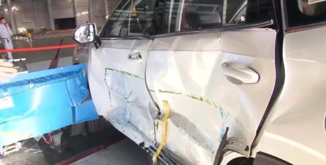 按照碰撞规则,在碰撞实验中要求撞击侧的车门是不可以打开的,所以两个车门都处于锁止状态。然而在非撞击侧,碰撞工作人员在讲解的过程中尝试拉开车门,但并没有顺利打开。也就是说,哈弗H6的四个车门在侧面碰撞结束后均被锁死。
