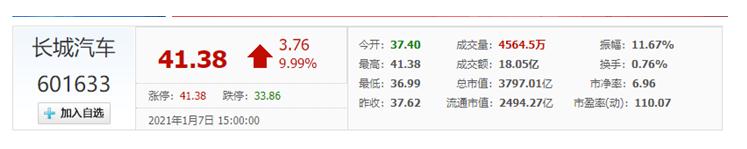 2021年汽车圈开年第一大事件是什么?我猜你的答案一定是即将在1月11日召开的“哈哈弗了”品牌初恋之夜。这场被称为“宇宙最长长长……主题发布会”的年度盛典,成功惊动了整个汽车圈,成为业内人员讨论的行业重点。 无独有偶,截止到2021年1月7日收盘,长城汽车股价达到41.38元,创长城汽车股价历史新高,长城汽车市值更是突破3000亿,向着4000亿迫近。相比去年同期,长城汽车股价累计上涨近400%。 一场发布会,与长城汽车股价的疯涨,看似是风马牛不相及的事情,但却足以让人以小见大,窥一斑而见全豹。在经济市场里,资本是最无情、也是最客观公正的标尺,大鹏扶摇时蜂拥兮而至,帝国破灭后便树倒猢狲散。所以根据2020年的股价波动来看,在这一整年的经济角力中,长城汽车显然拿到了市场最大的王牌。 那么,长城汽车股价的疯涨,与这场发布会有着怎样的逻辑关系? 又是谁主导了这场“放卫星式”的市值神话呢? 中国SUV全球领导者,哈弗再度蝉联销冠 毫无疑问,作为长城汽车的砥柱,哈弗品牌可以说是创造这一商业神话的绝对功臣。长城汽车股价的疯涨集中在下半年,从7.72元/股涨到41.38元/股,涨幅超过400%。而这样的暴涨脉络,与哈弗品牌的行业举措高度契合。如果将其归结为巧合,未免有些难以服众,我们不妨追溯下哈弗都做了些什么。 首先,哈弗以全年累计销量超过75万辆的成绩,连续11年斩获中国SUV销冠。其中,哈弗H6在2020年累计销量达到376,864辆,上市仅三个月的哈弗大狗强力斩获28,797辆的销售数据,再加上哈弗M6、F7等车型的强势表现,哈弗彰显中国SUV全球领导者实力。 哈弗品牌的市场表现,也直接促使资本看好长城汽车,进而反馈到长城汽车的股价变化里。 过度投入研发,“七国十地”布局彰显哈弗实力 哈弗坚持研发过度投入的策略,全面开展新产品、新能源、智能汽车的研发及新技术中心建设,也得到了行业的广泛认可。截止目前,哈弗已在日本、德国、印度、美国、韩国、奥地利等海外国家设置了研发中心,建立“七国十地”全球研发科技创新体系,包括智能驾驶、智能网联、新能源、造型等八大研发中心和技术孵化实验室等多个领域。 2020年7月份,长城汽车发布了“柠檬”、“坦克”、“咖啡智能”三大技术品牌,涵盖汽车研发、设计、生产以及汽车生活的全产业链价值创新技术体系,代表了长城汽车全新"造车理念",是长城汽车核心科技的强势积淀,奠定了全球化发展的坚实基础。 未来5年内,长城汽车还将在全球的研发项目上投入超过300亿,400余位全球汽车工程师、IT专家精心研发哈弗产品。并将在硅谷设立新技术孵化实验室,与英特尔、谷歌、苹果等国际科技巨头合作,进行最前端的超级技术研发。 国民品牌国际品质,哈弗继续深化全球化产业布局 基于全球化视野,长城汽车在2020年持续深化全球产业布局,先后收购印度塔里冈工厂、泰国罗勇府工厂,完成俄罗斯发动机奠基。结合现有保定、徐水、天津、重庆永川、江苏张家港、山东日照、浙江平湖和江苏泰州的八大生产基地布局,以及厄瓜多尔、马来西亚、突尼斯和保加利亚等地KD工厂,长城汽车已成功建立“12+5”的全球化生产体系,为哈弗品牌旗下产品进军全球市场埋下伏笔。 依托完善的全球化研、产、销体系,哈弗的产品成功畅销全球五大洲的五十余个国家和地区,并在海外设立了超过400家经销网点。根据哈弗全球化战略的最新部署,到2023年,哈弗品牌将形成超2000家经销商的网络覆盖。 聚焦汽车后市场,哈弗服务口碑持续攀升 同时,在不断修炼内功的同时,哈弗也在积极彰显品牌价值,聚焦汽车后市场,不断提升品牌服务质量。近期,2020年中国燃油汽车行业用户满意度指数(CACSI)测评结果发布,哈弗品牌荣获“售后服务满意度”第一,哈弗H6、哈弗F7以及哈弗M6等明星产品荣获同级用户满意度冠军,众多殊荣加持,哈弗品牌服务口碑持续攀升。 而且不止国内市场,哈弗品牌在国际舞台同样斩获颇丰,由谷歌、WPP和Kantar联合推出的“2020