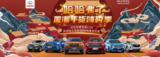 即日起至2月11日,用户可以随时登陆活动页面领取价值3000元的优惠券,购买第三代哈弗H6、哈弗大狗以及哈弗F7、哈弗初恋等明星产品,共计1250个名额,先到先得。同时,哈弗更在今晚懂车帝的哈弗品牌馆直播间准备了第三代哈弗H6的8000元购车劵秒抢活动。值得一提的是,在1月24日的超级直播间内, 50000元购车补贴超级大奖也为喜欢第三代哈弗H**哈弗大狗的用户准备好了,钜惠层层升级。那么,面对实力雄厚的全明星阵容和如此丰厚的购车“弗利”,我们又将如何参与其中呢? 巨额补贴天天送花样“弗利”抢到手软 为满足用户花样的购车需求,哈弗品牌以“哈哈弗了 国潮年货嗨购季”为主题开启一系列活动,携全明星阵容出击。其中,第三代哈弗H6以销冠之姿成为用户竞相追逐的新品,哈弗大狗以潮玩新旅伴的态度纵览超高流量于一身,而“AI智能网联SUV”哈弗F7更凭借过人潮智魅力博得年轻人超高关注,同时,更有“新超值家用SUV”哈弗M6 PLUS、“年轻人第一台车”哈弗初恋以及“智能硬派全地形SUV”2020款哈弗H9参与其中,强势助推哈弗品牌成为整个购车季最璀璨的星。