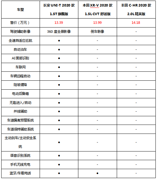 智能科技加持 使得相亲零压力 春节不息,相亲不止。每逢春节必相亲,这一方面可不能小瞧这遗传下来的“优良传统”,而在这第n次相亲来临之际,开一辆“有里有面”的车赢得对方的好感是再合适不过。长安UNI-T的智慧座舱,它的高感知和高情商会充当你跟相亲对象的“调剂器”。当你坐进车内的那一刻,UNI-T内置的AI系统已经通过A柱上的脸部感应器识别出了身份,伴随着专属的问候语,同时车载微信、QQ音乐自动上线,奉上优美的曲调,这一切都在不经意间自动完成,打破和相亲对象的尴尬气氛。以及强大的智能车机系统支持全语音交互,只动嘴不动手,就让那些隔着屏幕都让人流口水的美食、那些逼疯自己的魔幻路段、那些很多旅游攻略忽略的不知名景点、那些电影里出现过的文艺打卡点都为你真实呈现,让脱单指日可待! 通过这张表格可以看看长安UNI-T搭载的同级别车型所不具备的“黑科技”,大大小小加起来多出了若干项,毫无疑问,长安UNI-T的配置是最丰富的。 动力更充沛 让驾驭淋漓尽致 春节的堵车之路,这是一个令老司机也头疼的话题,堵车的辛苦对于任何一个司机来说都是艰难的挑战,出色的动力表现才能使这困难的旅途变得轻松而简单。长安UNI-T搭载蓝鲸NE1.5T高压直喷发动机无论在功率或扭矩均碾压对手, 180马力、300牛米扭矩的动力带来无法比拟的驾控乐趣。经济模式下输出线性、平缓,而且7速湿式双离合变速箱换挡平顺、没有顿挫,城市跟车的时候很轻松。切换到运动模式,它就会激进起来,轻踩油门就能感受到动力的涌现,让你感觉非常爽。 相比之下,虽说XR-V搭载1.5T涡轮增压发动机,有“地球梦发动机”一说,但动力输出不及UNI-T,尤其是峰值扭矩方面,爆发力自然是逊色。而丰田C-HR搭载的2.0L自然吸气发动机,虽排量更大,但是171马力、203N•m扭矩的绝对动力性能却要弱上几分。