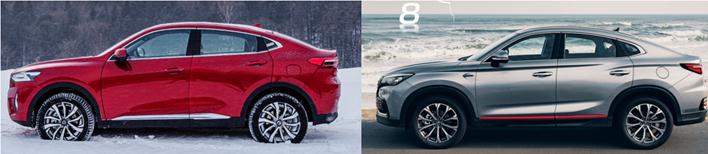 车身线条上,遵循黄金比例的2021款哈弗F7x,看上去一气呵成,就像一位充满力量的潮流运动健将,十分运动不羁,非常符合国潮的审美观。反观长安CS85 COUPE,“身材”尤为修长,给我一种运动感薄弱的感觉。对于一款轿跑SUV来说,如果缺乏运动性,就好比缺失了灵魂,因此整体外观设计上,我更喜欢2021款哈弗F7x。