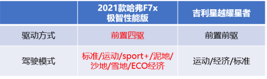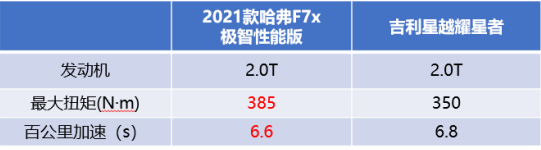 有些小事,“伤害性不大但侮辱性极强”。对于单身狗来说,是被情侣恩爱秀一脸的酸楚;对于学霸来说,是点读笔都知道的事自己却不知道的尴尬;而对于两位强者来说,是“你有的我有,你没有的我还有”的能力。就像15万级轿跑SUV界的2021款哈弗F7x和吉利星越,两位“自主品牌之光”旗下人气产品的比拼,更是真实产品实力的碰撞。其中,2021款哈弗F7x无论在动力、智能网联还是在智能安全方面,都用“你有的我也有,你没有我还有”的优势,全方面领先吉利星越,成为15万级轿跑SUV王者。接下来,我们不妨仔细对比一下。 2021款哈弗F7x极智性能版(15.49万元)VS吉利星越耀星者(16.58万元)