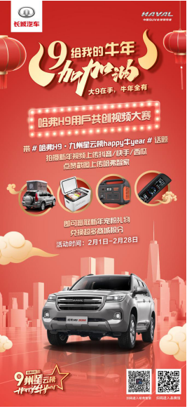由哈弗H9举办的用户共创视频大赛九州星云榜第一季已经落下帷幕,活动的数据非常喜人,反映出用户对此的喜闻乐见,抖音、快手两平台作品达到1500余条,播放量高达5000万。在此基础上,哈弗H9第二季用户共创视频挑战赛——哈弗H9·九州星云榜 happy牛year扬帆起航,活动主题为2021的牛年春节,邀请车主与粉丝记录下自己的新年生活,分享年味十足的欢乐时刻。 2月1日-2月28日,哈弗H9在这里等你,一起C位出道,驰9迎新! 视频赛和用户深度链接,同频道共思想 春节对于每一个中国人来说,都有着意义非凡的寄托,或是新年愿望,或是旧年盘点,又或者是一年到头,为数不多的相聚。甚至对于一些人来说,在这个疫情依然严峻的春节,只能在异乡将思念遥寄回家。 正是如此,哈弗H9为广大车主提供了这个用视频记录春节的机会,希望能够与大家一起感受新春氛围,共同迎接新一年的到来! 九州星云榜第二季奖品升级,特别为车友准备了超级丰厚的“新年礼物”,户外车顶帐篷、车载冰箱、户外电源以及越野护航仪,助你2021穿沙越水,踏遍山河!为展示哈弗H9的诚意与祝福,除作品优胜奖励外,所有按照规则参加活动的用户,均可凭借作品的点赞数量100:100兑换哈弗智家商城积分,多拍多得,上不封顶! 始终坚持用户思维,共创共享品牌精神 自说自话不是品牌,想用户之想,做用户之想才品牌。哈弗H9深刻了解粉丝车主的社交属性、生活方式,他们热爱旅行,热爱分享,对于个性化的内容具有非常强的兴趣,凭借一台单反、一架无人机、甚至一部手机,活跃于各大短视频平台,充满热情的记录着自己的生活与态度。正是因为深刻明白这一点,哈弗H9成功举办了第一季九州星云榜,并在2021春节发起第二季happy牛year,诚挚邀请用户晒出自己的春节,鼓励更多、更优质的UGC内容产出。 从跨界到出圈,为用户打造出行之外的生活样板 从乐野制燥营到张家界自驾游基地,再到云上露营节和九州星云榜,哈弗H9和用户一起“共创共享品牌红利”的决策贯穿线上线下每一场营销,中国SUV全球领导者哈弗始终坚持和用户一起跨界、破圈,创造更多有趣的优质IP,玩出更多元的汽车文化。 前不久举行了轰九大队第六届全国年会暨重庆金佛山首届越野节,在这场汽车圈难得一见的盛大聚会中,我们可以看到,作为中国自主品牌的SUV标杆,哈弗H9在用户共创这条路上,已经走在了行业的前沿。 在这个牛运当头的牛年春节,用手中的相机和哈弗H9一起happy牛year,晒出你的家乡、你的年货、你的年夜饭,说出你的愿望、你的祝福、你的心之所向,哈弗H9助你圆梦,祝你万福!#哈弗H9·九州星云榜 happy牛year#等你一起,2021,驰9迎新! |