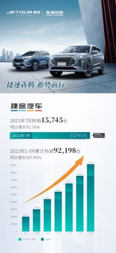 日前,捷途汽车7月销量公布,刚刚宣布品牌独立的捷途汽车可谓交出了一份亮眼的成绩单。7月捷途汽车店端销量达15745台,环比增长39.02%,实现了连续7个月月销破万,保持高增长态势。在车市整体下行的大背景下,捷途汽车逆市上扬,从2018年8月至今,累销近40万辆,创造了中国新锐SUV品牌发展的新纪录。 专注“旅行+”市场,打造“国潮”文化新名片 作为奇瑞控股集团旗下的子品牌,捷途汽车始终坚持以用户为原点,全面布局“旅行+”市场,并将传统文化与产品创新相融合,彰显了中国汽车品牌的民族自信。 捷途X70系产品表现稳健,7月份斩获12041台店端销量,成为当之无愧的销量主担。终端的积极反馈来源于强大的产品势能:“徽城翘楚”的设计理念将汽车工业与中国传统美学融合,独树一帜;实用空间、高品质感和强智能科技属性的产品卖点,更是直击大家庭用户的出行痛点,与年青一代消费群体共情共鸣。 以全新一代捷途X90为代表的捷途X90系聚焦B级SUV市场,7月店端销量达3704台。在三胎政策开放的当下,捷途X90系丰富的越级配置、同级领先的宽敞空间以及 “健康”属性,集实用性和品质感于一身,成为细分市场标杆级产品,极具竞争优势。 后续,随着捷途X90 PLUS、捷途X-1等新成员的加入,捷途汽车将以更全面的产品布局,满足用户的出行需求。相信届时,捷途汽车在终端的市占率一定会步入新的台阶。