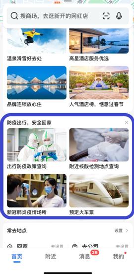 春节将至,有核酸检测需求的用户越来越多。日前,高德地图推出“春节返乡核酸综合服务”,为用户提供核酸检测预约及各地防疫政策查询服务,覆盖北京、上海、广州、成都、杭州、武汉、长沙、合肥等118个城市。 本次新推出的“春节返乡核酸综合服务”在原有核酸检测点位地图的基础上,增加了到店核酸检测预约服务,用户在高德地图搜索“核酸检测”,不仅进入搜索页面查阅包含距离、营业时间、检测价格等详情介绍,还可一键预约距离自己最近的核酸检测机构检验服务。 此外,对于一些出行不便的老年人、孕妈妈、婴幼儿群体,高德地图还特别推出了上门核酸检测服务,在高德地图搜索“上门核酸检测”,就可以通过搜索页入口把检测人员约到家,同时有效避免聚集风险。 不仅如此,即日起至2月28日,在各地卫健委当地定价基础上,高德地图还会为线上预约用户提供最高立减10元的优惠。 核酸检测预约服务外,日前,高德地图首页还上线了“防疫出行,安全回家”专区,提供各地“出行政策”、“新冠疫情场所”、“附近核酸检测地点”等实用信息、特色地图,为用户提供科学防疫数字化查询服务。 |