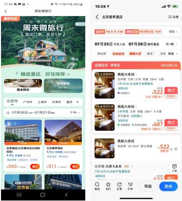 除了特惠爆品外,本次“暑期特惠节”为满足用户的不同出游需求,还上线了以近郊出游为主题的“周末微旅行”,以及亲子避暑为主题的“暑假玩水夏令营”等子类目板块。用户可通过平台比价、获取补贴的方式,同样以更优惠的价格预定心仪的出游产品。