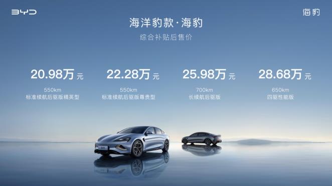 7月29日,年内最值得关注的新能源车,比亚迪海豹正式上市,四款车型售价为20.98万元-28.68万元。海豹这款e平台 3.0技术的集大成之作,将于下个月开启新车交付,专属的常州工厂也将开足马力提升产能,对支持海豹的用户予以“回豹”。 除了价格带来的惊喜,海豹还升级了产品配置,海豹650km四驱性能版的用户可通过OTA远程升级免费获得iTAC智能扭矩分配系统,让普通用户轻松晋级高能玩家;并且对于大家关注的全景天幕隔热问题,海豹将全系赠送遮阳帘,给用户更贴心的用车体验。