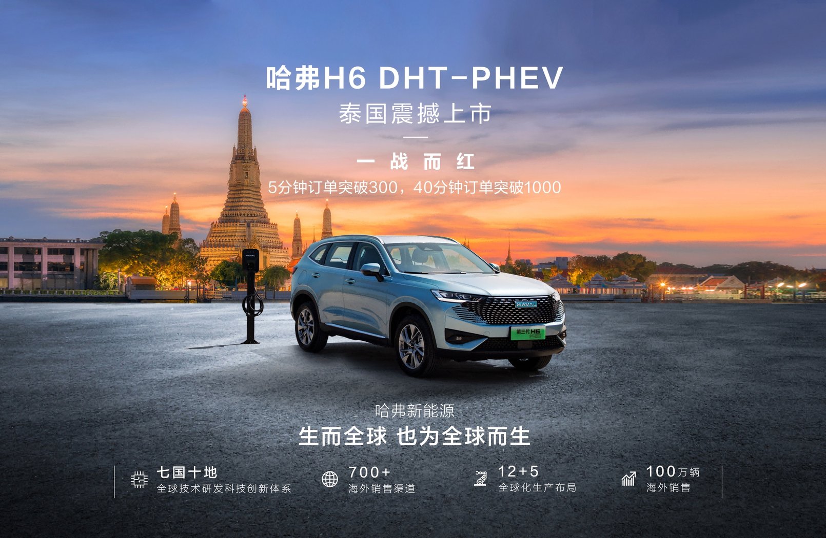 10月7日,哈弗H6 DHT-PHEV正式进入泰国新能源汽车市场,这是该车继9月28日在国内上市后,首次登陆海外市场。 发布会上,哈弗公布了H6 DHT-PHEV的海外售价,其在泰国的市场指导价为169.9万泰铢,折合人民币32万余元。上市当天,新车订单5分钟突破300,短短40分钟订单突破1000辆。据悉,哈弗H6 DHT-PHEV计划于11月中旬交付泰国用户。