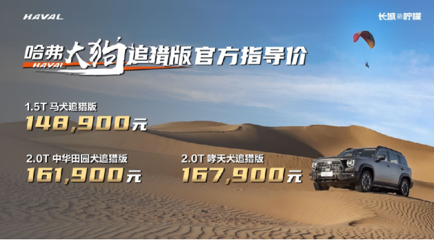 沙漠地区是完美的越野场地,但是对所驾车辆的要求是要有四驱功能以及沙地模式的越野车。在沙地行驶,如果能够看到车辙是最省力的开法,按着车辙导引的方向前进,可以减少陷入沙地的风险。如果想“刷锅”或是翻越沙丘,建议大家先勘探沙丘的落差后再冲刺,尽量不要过于冒险。 在北方的冬天,有广大的地区为白雪覆盖。在积雪不及2公分的雪地,只用普通地形的驾驶方法即可。如果降雪量较大,不论是柏油路面或泥地,积雪以后特别湿滑,因此车辆可以打开“雪地模式”并安装防滑链,同时保持低速行驶。 崎岖的戈壁滩和浅水区是越野爱好者的天堂,在此种自然形成的原野地形驾驶,首先需要了解车辆的最低离地间隙,保持低速平稳行驶,如具备砂石路模式以及540°环视,可以有效避免底盘碰撞石头。涉水行驶前需探查了解水深,涉水能力约与轮胎高度相仿,需注意车速不可太快,激起水花溅湿电路而熄火是常有的情况。 哈弗大狗追猎版,让小白速成越野高手 成功的越野驾驶是技术、智慧和勇气的完美结合,小白们需要多加练习,反复体验。但如果你拥有一辆哈弗大狗追猎版的话就另当别论了,这款3/4刻度座驾以强大的轻越野能力,瞬间就能提高你的越野驾驶水平。