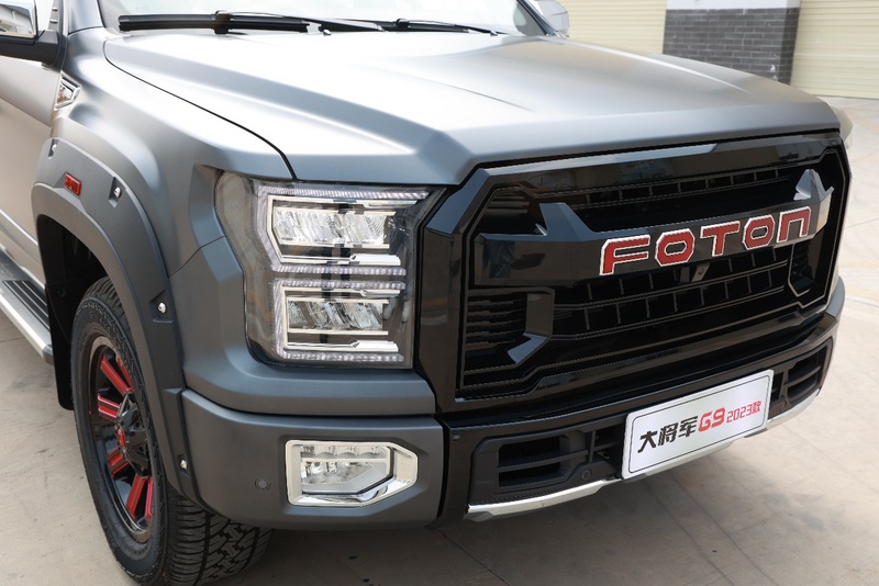 从去年开始,随着国内政策的调整,很多地区逐渐解除了皮卡车的通行限制,这一举措极大激活了皮卡市场的消费需求。在消费结构不断升级的大环境下,消费者对皮卡的购车需求也从最初的工具车向越野化、定制化、高端化进行转变。政策的利好加市场的回暖,使车企们看到了高端皮卡车广阔的市场空间。此次2023款大将军皮卡的问世,就是福田皮卡在深度挖掘市场需求、充分洞悉消费群体诉求之后,倾力打造的一款高端皮卡车型,也是福田皮卡进军高端皮卡车市场的明星之作。 王者之躯 尽显硬汉风格 在外观方面,2023款大将军皮卡给人印象十分强悍,具有极高辨识度。前进气格栅采用多边形设计,中网中间镶嵌有“FOTON”的字样。前格栅、前灯组、前包围的尺寸都非常大,两侧的大灯组内部采用了双“C”形状的LED日间行车灯,酷炫的灯语,犀利锋锐,科技感满格。前保险杠造型更具野性,中间黑色进气口底部带有镀铬饰条点缀,极具视觉冲击力。黑色轮眉粗犷霸气,孔武有力。箱斗内部采用了黑色涂装,不仅可以起到防刮、防擦、防水、防锈的保护功能,同时在视觉效果上也为新车塑造出一种厚重的感官。