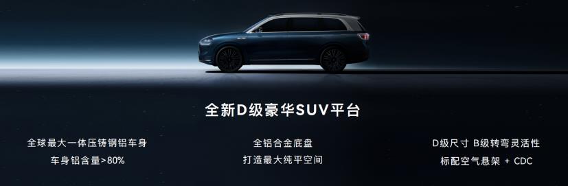 百变奢享空间,媲美MPV的驾乘空间 AITO问界M9实现了与MPV同样的纯平地板,三排无台阶,方便进出;二排前后可调范围更大,全车座椅均提供电动滑轨,乘员和行李空间灵活调整,乘坐更宽敞舒适。全车座椅均支持电动调节,让每一个座位都是头等舱,同时还将提供3|4|5|6座的百变座椅模式。 作为全尺寸旗舰SUV,AITO问界M9长5230mm,轴距3110mm,基于六座均权的设计初衷,集纯平地板、灵活的空间变化、百变的座椅模式等创新设计于一体,让SUV实现媲美MPV的百变奢享空间体验。 全新D级豪华SUV平台,百万豪车的驾乘体验 AITO问界M9基于全新D级豪华SUV平台打造,采用全铝合金底盘,一体化压铸车身,车身铝合金体积占比超过80%,全系标配空气弹簧和CDC减震系统,提供超越百万豪车的驾乘体验。