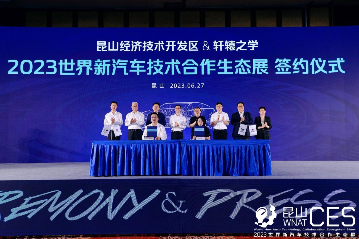 15时30分,签约仪式的议程正式开始。全场嘉宾观看了2023世界新汽车技术合作生态展简介视频,通过视频了解了昆山CES这个新事物,以及首届昆山CES将汇聚200余家企业的硬核技术、极致产品。 轩辕之学校长、世界新汽车技术合作生态协会理事长、铃轩奖评审团主席贾可博士上台描绘了昆山CES的创立初衷、使命任务及2023昆山CES的简要情况。 他说道:“当前新汽车发展进入瓶劲期,供应链也面临着两大难题,一是本土化与国际化如何融合,二是新能源智能网联汽车时期主零关系如何端正,所以汽车行业亟需一个强大的合作生态圈。另一方面,常规的供应链展览中难以涵盖整个供应链类别,汽车展览中供应链企业又经常处于配角位置,难以被聚光灯集中,所以催生了新汽车技术合作生态展。昆山CES将填补业内空白,进而为汽车行业提供开放合作的场景、场合,建设合作生态,追求主零开放交流、合作共赢、可持续发展。今天的签约仪式,正式宣告新汽车技术合作生态展落户昆山,正式预告了首届昆山CES将于11月10-12日在昆山国际会展中心正式举行,也希望能凭借昆山的地缘优势与主办方多年积累的资源,真正构建一个主零交流桥梁、新汽车进化阶梯。”