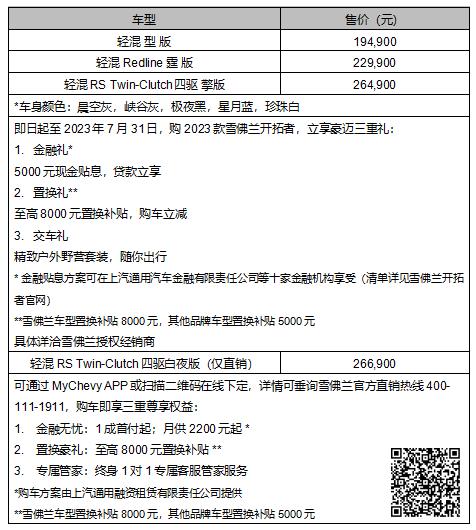 2023年7月10日,上汽通用汽车雪佛兰品牌宣布,美式7座大型SUV雪佛兰开拓者上新2023款,共推出4款车型,售价19.49万元至26.69万元。新车在车身尺寸、外观造型、科技配置等方面进一步升级,配合雪佛兰经典2.0T+9AT黄金动力组合(以下简称2T9)与48V轻混系统的强悍性能、Twin-Clutch智能四驱对全路况的掌控能力以及雪佛兰SUV始终如一的可靠品质,2023款雪佛兰开拓者将以更硬核的实力,继续与中国消费者一起自由驰骋,开拓豪迈。 超5米大型车身,展现美式SUV力量感 2023款雪佛兰开拓者拥有更庞大的车身,车身尺寸达到5011mm×1953mm×1726mm,更长的车身配合尾部上扬的腰线,释放呼之欲出的磅礴力量。新车对前后大灯造型进行焕新设计,前脸采用X型雷霆前脸与星辉分体式LED头灯组设计,进一步彰显美式SUV硬朗气质;双曲线型LED尾灯以莫比乌斯环为设计灵感,侧标志灯为雪佛兰“金领结”形状,点亮后细节感拉满。2023款雪佛兰开拓者内饰仍采用与科迈罗Camaro同源设计的座舱风格,10吋高清全彩多点触控液晶屏造型更有棱角,与运动科技感内饰风格匹配度更高。与此同时,新车依旧提供Redline尚·红系列及RS系列版本,并拥有宽绰的乘坐空间与灵活的储物空间,以更丰富的设计风格与舒适体验,满足中国消费者对用车的多元需求。 极致驾控驰骋全境,硬核实力值得信赖 为了助力消费者极致驾控,2023款雪佛兰开拓者搭载更丰富的舒适安全科技。新车全系新增Auto Hold自动驻车,除入门版车型外标配四窗一键升降及手机无线充电功能,顶配车型还新增流媒体内后视镜,为驾驶者提供更宽阔的视野、减少视觉盲区,进一步保障行车安全。 得益于雪佛兰2T9黄金动力组合与48V轻混动力系统低扭强、换挡平顺、节能省油的优势,2023款雪佛兰开拓者兼具强劲动力、高行驶品质感与高燃油经济性。同时,新车全系搭载后五连杆独立悬架,无论在城市路况抑或是非铺装路况下,均能为驾乘者提供舒适、稳定的操控感受。四驱版本更配备了同级领先的Twin-Clutch智能四驱系统,配合All-road全路况驾驶模式,2023款雪佛兰开拓者既可满足消费者的城市家庭多人通行,也能以充沛动力和全路况驾驭能力陪伴驾驶者在广袤天地肆意驰骋。 雪佛兰自1935年推出全球首款SUV车型Suburban Carryall以来,88年间,雪佛兰SUV家族已陪伴全球近2500万车主不断探索未知旅途。雪佛兰开拓者自2020年引入国内,凭借高辨识度的纯正美式SUV硬朗造型、强悍高效的动力表现以及掌控全境的四驱性能,收获众多SUV拥趸的喜爱。此次,焕新上市的2023款雪佛兰开拓者以雪佛兰SUV家族深厚历史积淀专业打造,将以更强悍的硬核实力成为“19万级美式7座大型SUV”的品质首选,助力消费者开拓广阔天地! |