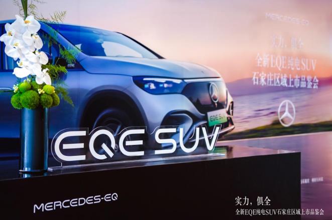 7月15日,石家庄地区全体梅赛德斯-EQ经销商在石家庄滹沱新世界度假酒店举办了全新EQE纯电SUV上市品鉴会。 四款首发车型包括:EQE 350 4MATIC先锋版纯电SUV、EQE 350 4MATIC豪华版纯电SUV、EQE 550 4MATIC特别版纯电SUV及EQE 500 4MATIC 纯电SUV,厂商建议零售价格区间为人民币48.6万元至63.06万元。 全新EQE纯电SUV,作为梅赛德斯-EQ品牌首款基于EVA纯电平台正向研发的国产豪华纯电SUV,以全面实力,带给人驾驭多需求,多场景的能力,更让人在感性诉求上得到最大满足。 承袭“先锋豪华”的品牌基因与一如既往的奔驰品质,聚焦设计、体验、智能、驾驭四大核心优势的打造,更以诸多中国专属配置,打造符合中国客户需求的纯电全能座驾,堪称舒适和智能体验的新标杆。 进入活动场地,映入眼帘的便是上市品鉴会的签到区域,高级不失优雅的活动场地,搭配高挺、向上、由希望而生的签到桌花,专业礼仪细心为每一位到场来宾进行签到 。在石家庄滹沱新世界度假酒店大堂入口设置签到处及展车的展示,不仅供邀约的来宾鉴赏全新EQE纯电SUV的独特魅力!更是让现场更多的自然流动客户,对全新EQE纯电SUV有了更深一步的了解与认识。 在上市活动的开始之际,石家庄庞大之星奔驰总经理——逄总,为现场现场来宾致辞,感谢所有的来宾的到来,更为全新EQE纯电SUV石家庄区域上市品鉴会正式拉开了序幕。 「实力,俱全」专属主题茶歇,感受优雅的极致,更是为炎热的夏天带来凉爽之意,带领来宾体验面面俱到的每一面,都是俱全的实力。 全新EQE纯电SUV的亮相,其外观设计具有独特的动感曲线,车身线条流畅,外观时尚大气,集软硬实力于一身,兼具先锋之美与舒享品质,有值得信赖的安全品质,以及前沿智能的科技配置。 经典与创新的结合,传承与未来的超然演绎;在现场,石家庄市河北梆子剧团,国家一级演员,张莉英老师,为我们带来精彩的戏曲表演,揭幕新车亮相。 全新EQE纯电SUV采用了梅赛德斯-奔驰最先进的电动汽车技术,拥有高效的电动动力系统,可以提供优异的加速和动力表现。同时,全新EQe纯电SUV还配备了先进的驾驶辅助系统和安全技术,为驾乘者提供更加安全和舒适的驾驶体验。 在对新车有了更加详细的了解后,就开启了今天的重磅环节-试乘试驾,在听完路线讲解后,到场来宾已经跃跃欲试,想要在第一时间感受全新EQE纯电SUV的魅力。 全新EQE纯电SUV采用EQ家族化的“弓形车身”设计,拥有低至0.25cd的风阻系数,实现优异的车辆能效表现。与此同时,这种弓形 之姿,也为全新EQE纯电SUV营造极具运动感的俯冲之势,让人沉浸于追风的竞速之中。 全新EQE纯电SUV互动体验,来宾兴致盎然,面面俱到的感知扑面而来,来宾享受其中。 实力,俱全 全新EQE纯电SUV集软硬实力于一身,作为一辆为电动时代的全场景、全方位出行开拓了新境界。 梅赛德斯-EQ从未停止对未来的探索,始终坚持打造最令人向往的豪华座驾。 步入电动时代,三叉星徽正全力提速“全面电动”,以不断丰富的纯电产品阵容,创造人、科技与自然和谐共融的美好明天。