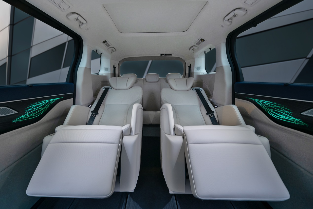 高山MPV四驱行政加长版采用了专属的豪华六座布局,所有座椅都支持电动调节,并且配备了加热和通风功能。可选装的全尺寸航空座椅具备12向调节、一键躺平、10点按摩共6种按摩模式以及无线充电等功能,奢华程度超越想象。