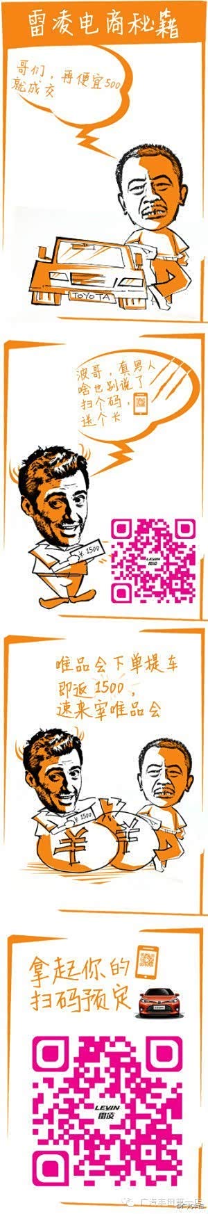 购车无需费嘴劲,雷凌电商秘籍来帮你!新感观领秀中级车雷凌LEVIN登陆唯品会,重重豪礼,让你怦然心动!动动指头扫描二维码,轻轻松松把雷凌LEVIN开回家!也可登陆http://t.cn/RvlUDdr 直接秒杀!