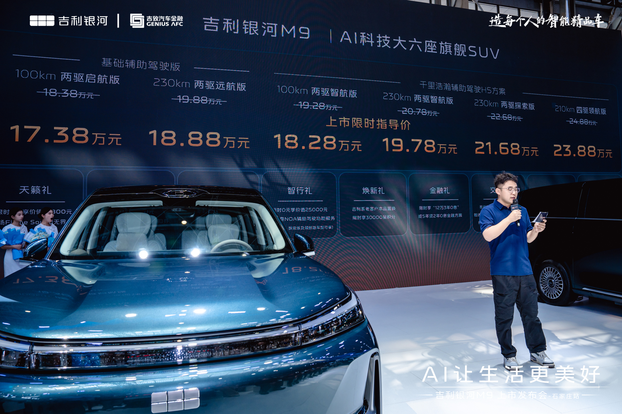 当全场还沉浸在对 M9 产品实力的赞叹之中时,吉利银河 M9 的价格正式公布,再度引发现场沸腾。新车上市限时指导价仅为 17.38 万 -