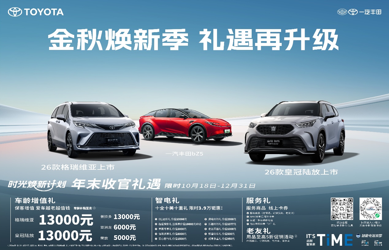 这个金秋,一汽丰田用诚意满满的多重好礼,搭配两款重磅车型的焕新登场,把先进科技的便捷与人文关怀的温度,悄悄渗透到每一次出行的细节里,为用户勾勒出美好出行的全新模样。就像