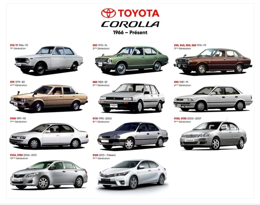 自1966年首次亮相以来,卡罗拉已经有过很多种形态。它曾是两厢车、轿车、旅行车和轿跑车。有些市场甚至推出过小型商务车(minivan)版本,还有三门和五门的掀背车。丰田能够将这个铭牌应用于如此广泛的车身风格,帮助它取得了创纪录的成功,累计交付量已超过5500万辆,使其成为历史上最畅销的汽车。