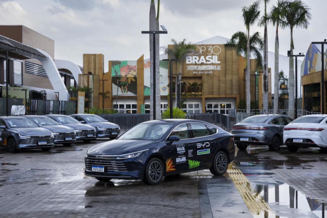 比亚迪第30届联合国气候变化大会绿色车队 11 月 17 日,比亚迪巴西分公司总经理李铁受邀出席 COP30 并发表主题演讲:“全球低碳转型浪潮下,新能源汽车普及是交通领域碳减排的关键路径。比亚迪以第五代 DM 超级混动技术、兆瓦闪充等创新科技为支撑,让优质技术触手可及,已助力数百万传统燃油车用户向新能源转型。愿与全社会携手,共筑可持续发展的低碳城市。”