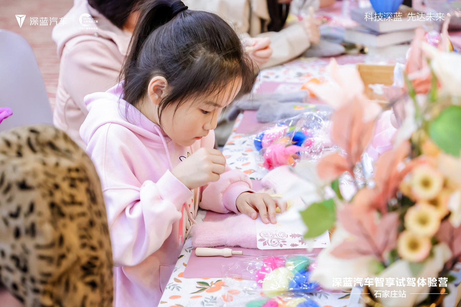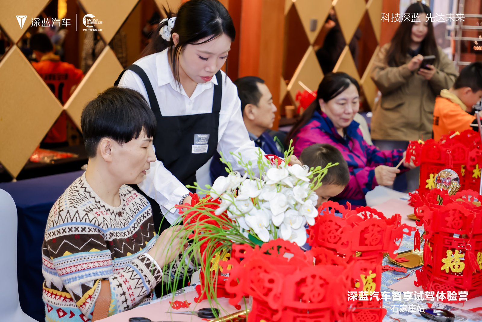 乐活互动升温,解锁全家共享的幸福时光 不止于驾控,深蓝更致力于营造具有情感共鸣的场域。深蓝汽车在活动现场设置了"乐活聚场"互动专区。非遗宫灯DIY、羊毛毡手套制作等环节,让参与家庭在轻松愉悦的氛围中感受深蓝品牌的温度。晚宴环节更是以深蓝色系为主题,通过精致的场景布置与贴心的服务,为嘉宾营造出温馨而尊贵的交流空间。